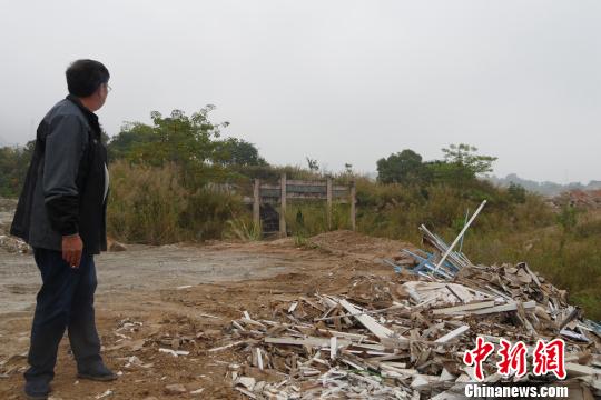 翁氏后人看着堆放在祖墓的建筑废料无可奈何。 陈启任 摄