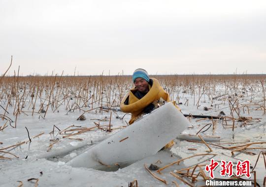 (新春走基层)白洋淀深冬挖藕人:冰层下探寻年夜饭鲜嫩滋味