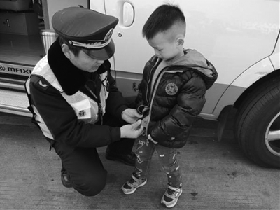 朱正岗边安抚小男孩,边询问情况。顾海铮 摄