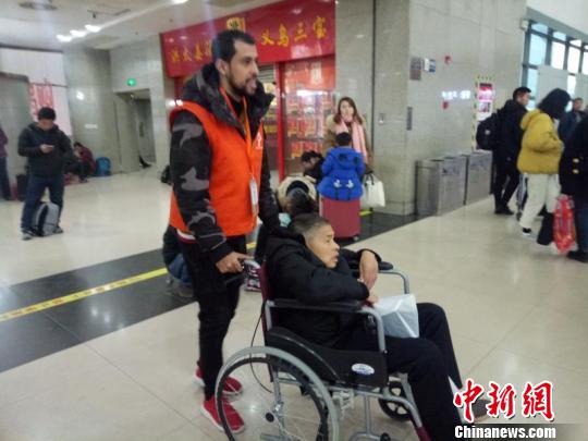 中新网义乌1月29日电(记者 奚金燕)春运已经启幕,有一群特殊的志愿者悄然加入了春运服务的队伍。主动引导咨询,帮忙推轮椅提重物……这是23岁的也门小伙马万在浙江义乌站进行志愿服务的身影。在义乌生活多年的他,已经能说一口流利的中文,对义乌站候车室情况也了如指掌,这些天已经帮助了不少旅客,收获了无数个“赞”。