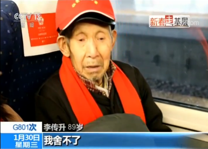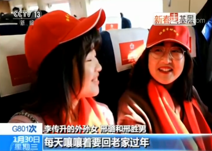 李传升的外孙女邢胜男:想家人了。本来都是买不到票了,姥爷也特别的难过,正好知道有这个机会,姥爷就特别开心,刚才一路特别高兴。