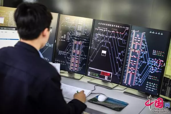 北京动车段调度中心相当于“动车医院”的导医分诊台,调度员在这里可以查看北京动车段线路使用情况以及检修计划兑现情况。中国网记者 郑亮摄