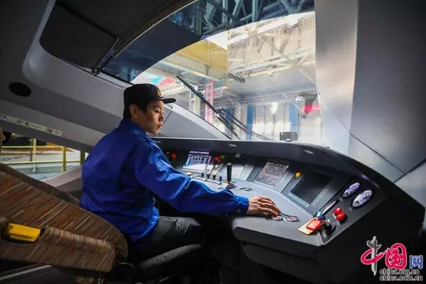 北京动车段一级修车间,机械师在司机室进行动车组状态实验。中国网记者 郑亮摄