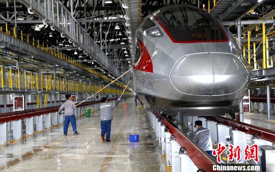 2017年6月26日,中国当前时速最高的动车组列车“复兴号”正式投入运营,开启了中国高铁的新时速。春节前夕,中新网记者来到位于山东的济南东动车组运用所,探访“复兴号”下班后的“夜生活”。