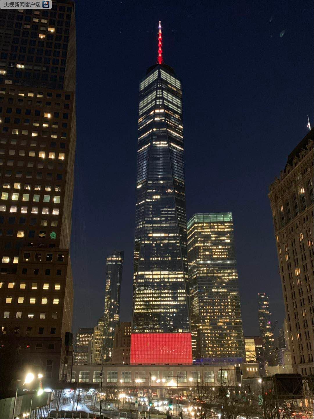 庆祝中国春节 纽约世贸大楼点亮“中国红”灯光