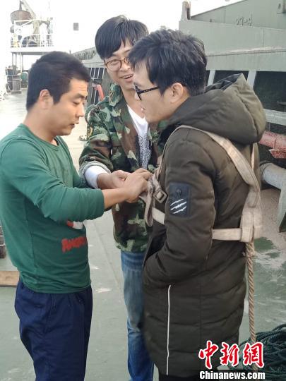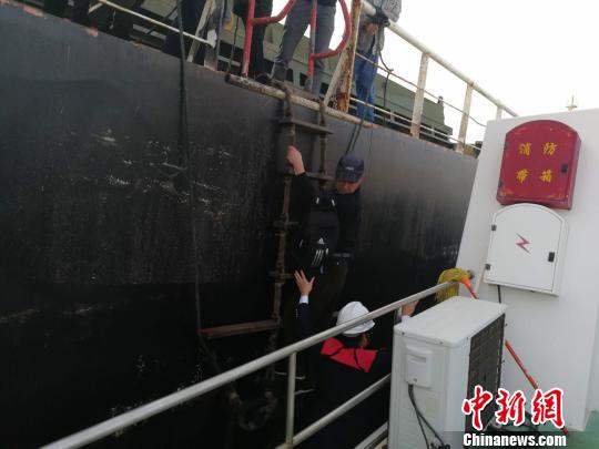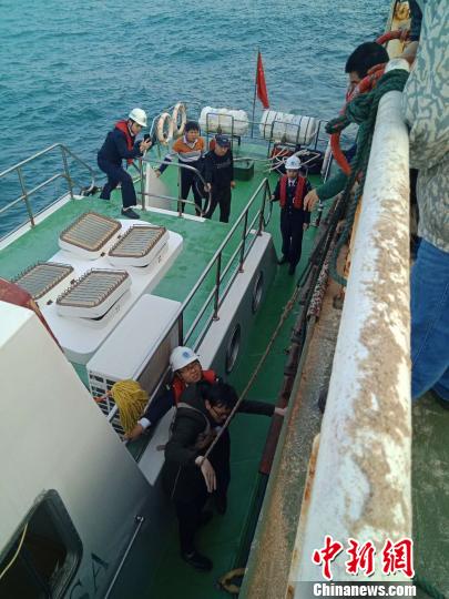 图为协助转移目标船船员上海巡船 惠州海事局提供 摄