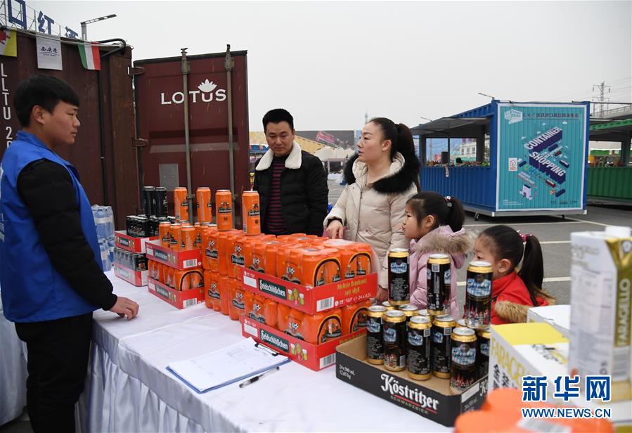 1月27日,消费者在西安中欧班列年货节上选购。当天,X9020次中欧班列满载商品抵达西安新筑车站,这是2019年以来抵达西安的第29趟“洋年货”专列。 新华社记者 李一博 摄