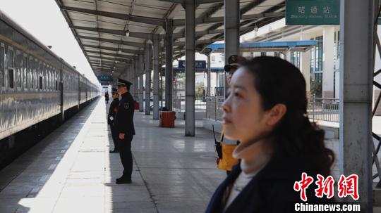 夫妻在站台上共同送车。 曾江 摄
