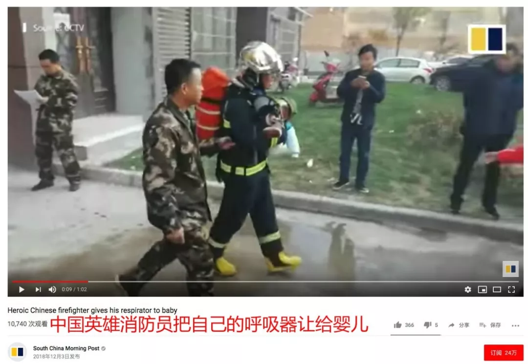 不久前,一位中国消防员将呼吸器让给婴儿的画面被香港《南华早报》发布到YouTube后,感动大批外国网友。