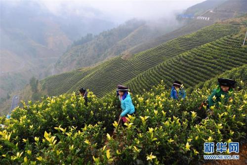 苗族群众在贵州省丹寨县排调镇甲石村管护茶场(2018年1月20日摄)。新华社记者 杨文斌 摄