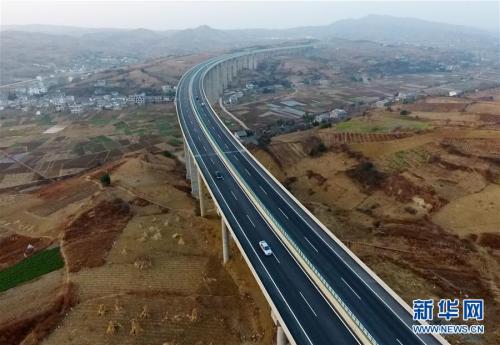 这是贵州六威高速公路上寨特大桥(1月25日无人机拍摄)。新华社记者 杨文斌 摄
