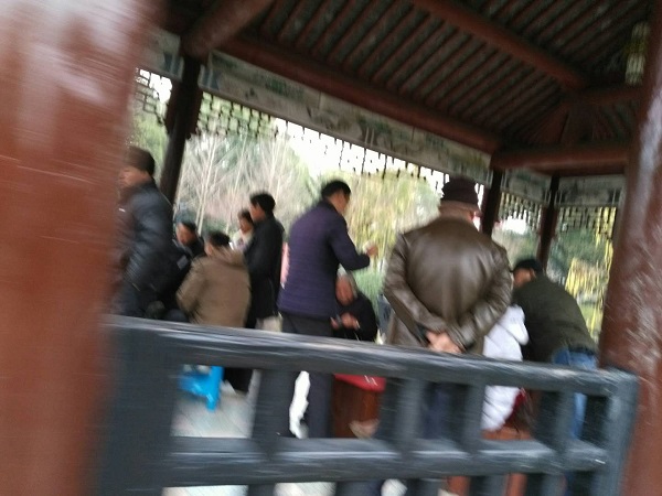 无奈之下,臧先生只得走向另一个亭子。谁知,这里同样“人满为患”。不过,这些市民并非在休息,而同样是在打牌消遣。当有游人走近亭子时,能见到牌桌周围有一些人十分警惕,像是在“望风”。