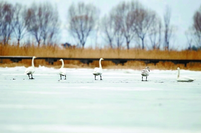 本报讯(记者 王海燕)立春后,冰雪渐渐消融,延庆野鸭湖开始热闹起来。3个月前过境南下的越冬候鸟,开启了“北上”的回归之路。目前,大天鹅、灰鹤、白秋沙鸭的“先头部队”已经抵达。预计3月上旬至中旬,野鸭湖将迎来候鸟过境高峰期。