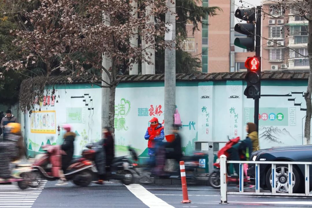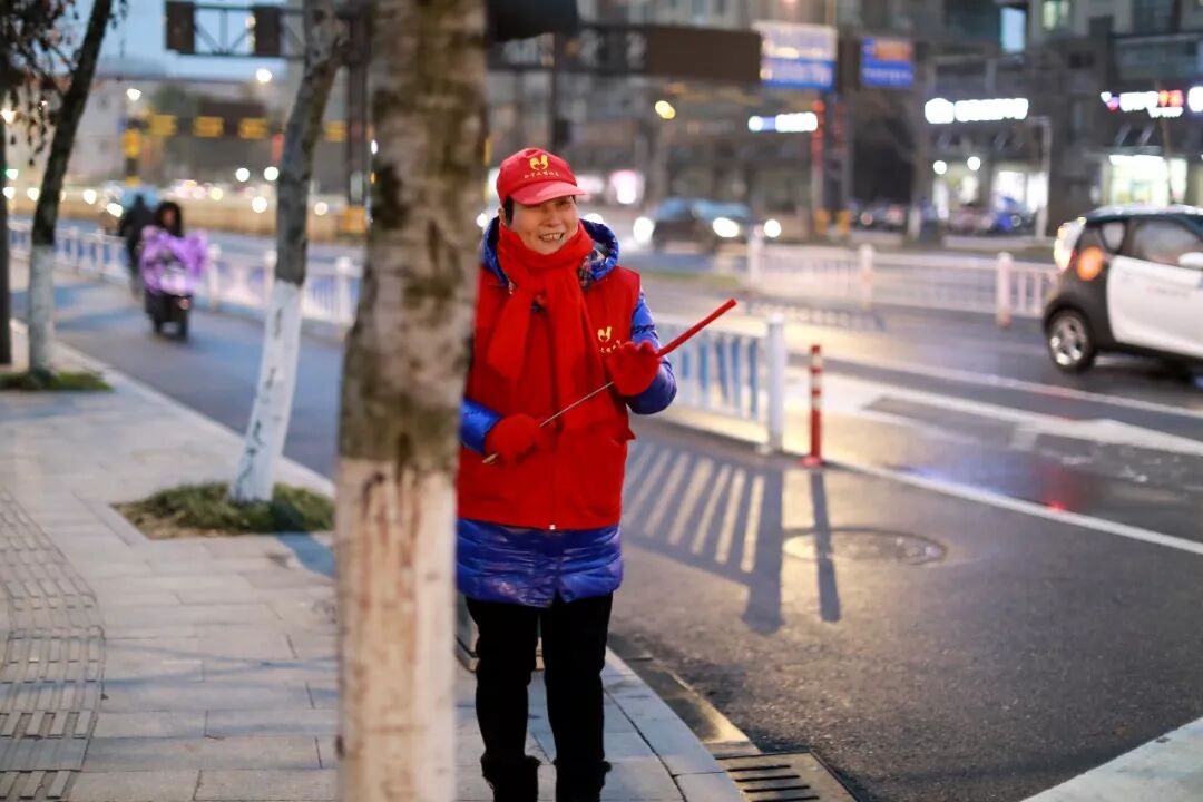 记者通过江干区笕桥街道找到了这位大姐,她叫曹云妹,64岁,环站北路新风路口的文明劝导员。