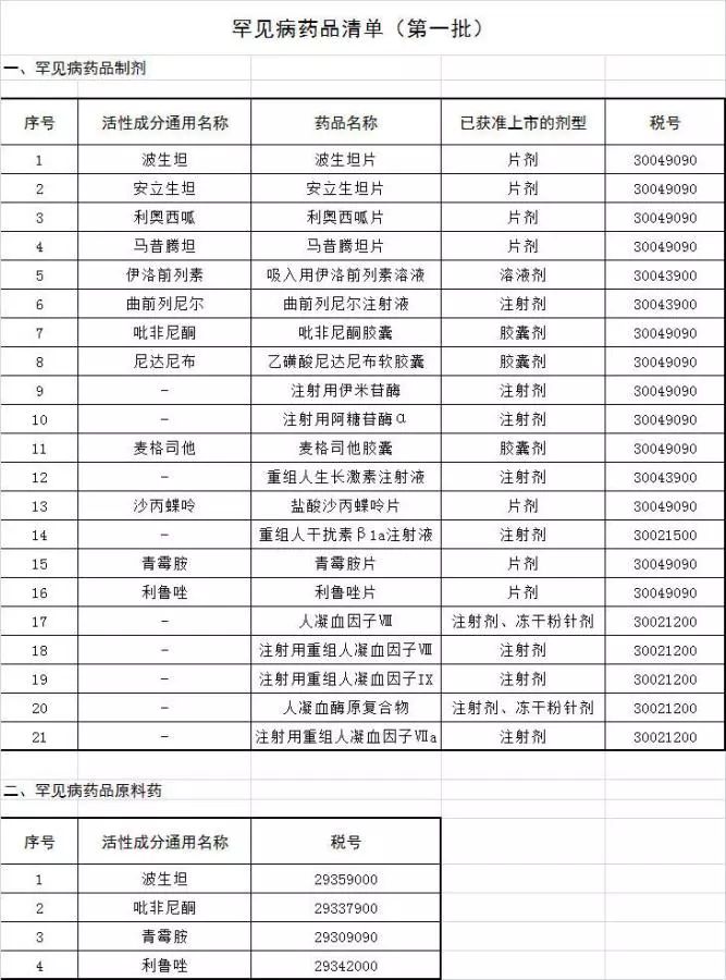 21个罕见病药品减按3%征增值税
