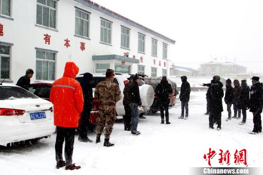 图为西藏日喀则边境管理支队帕里边境派出所民警将滞留车辆和人员安置到派出所内。 刘红卫 摄