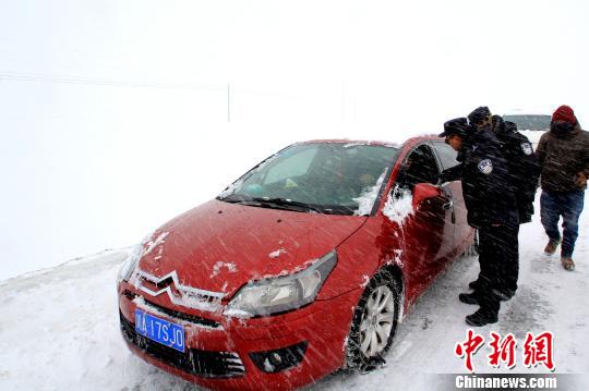 图为西藏日喀则边境管理支队帕里边防派出所民警疏导滞留人员和车辆。 刘红卫 摄