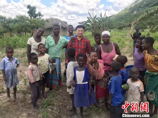 田振华与马拉维一个小村庄村民一起合影。受访者供图