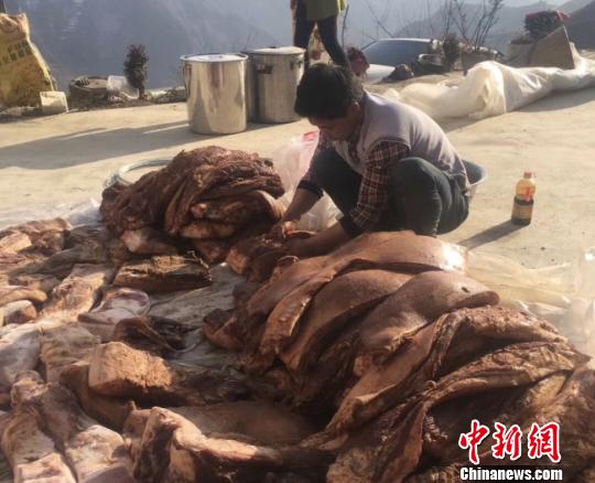 图为杜桂英建的养殖厂,贫困户正在腌制腊肉。(资料图) 钟欣 摄