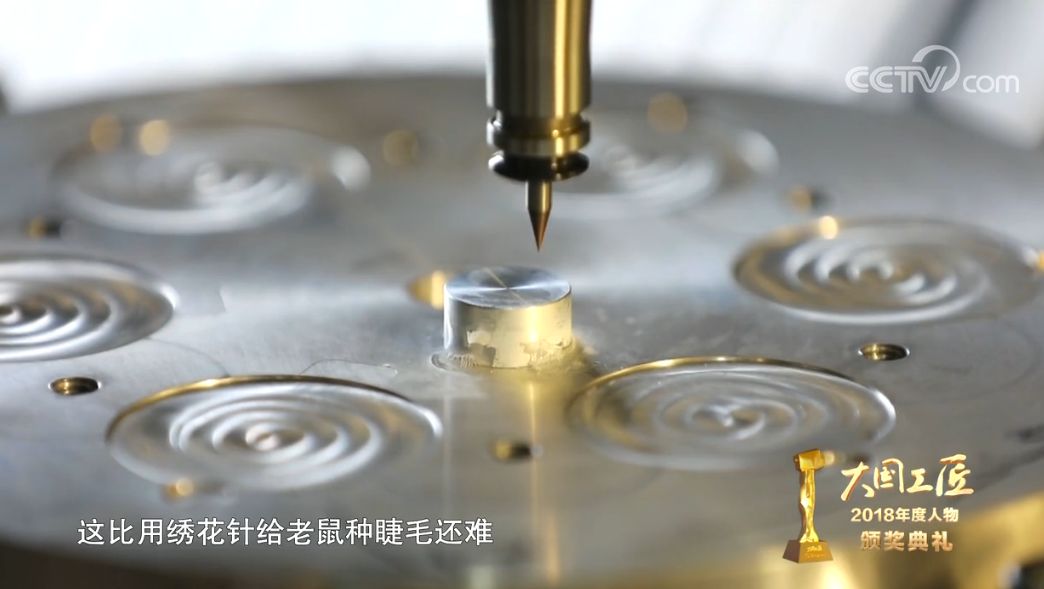 要用比头发丝还细0.02毫米的刀头,在这个直径不到2厘米的圆盘上打出36个小孔,这比用绣花针给老鼠种睫毛还难。