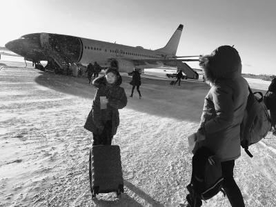 今年寒假期间,一家人在瑞典基律纳机场转机时遭遇了风雪天气。