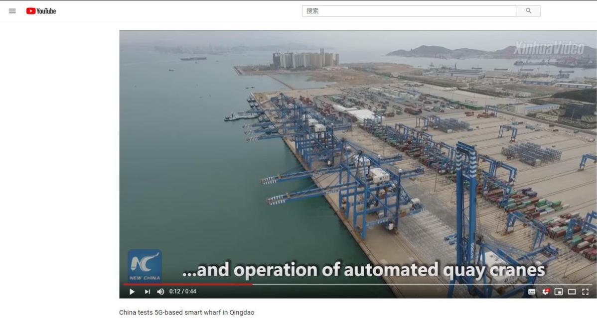 2019年2月13日New China TV在YouTube上发布题为《全球首个5G智慧码头在中国青岛投入测试》的视频。