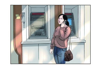 10.等受害人离开后,诈骗分子就会迅速赶到ATM机前,输入密码,取走受害人卡里的钱。白鸽警官提醒:如遇到ATM机吞卡,请拨打银行官方服务热线进行确认,同时切勿将密码告知他人。