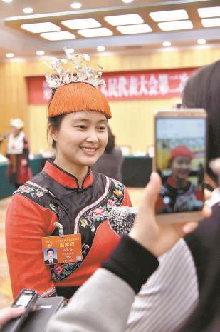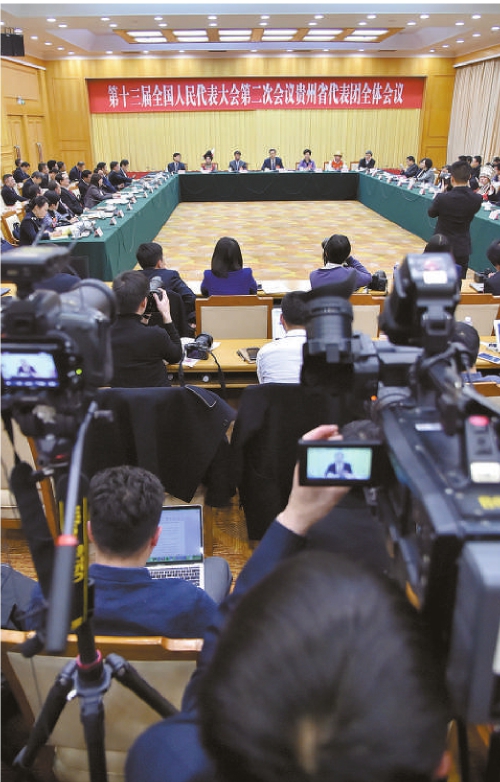 贵州省代表团举行团组开放日活动,集体接受媒体采访。