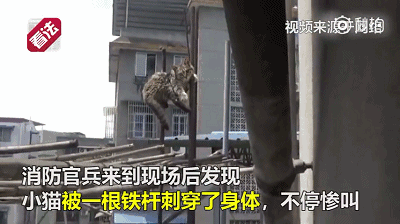 四川乐山城区,一只喵星人不知什么原因,被钢管穿透身体,在房顶坚持了2天后终被救下。有网友称赞:每一个生命都应该被珍爱,为热心市民和消防员点赞!