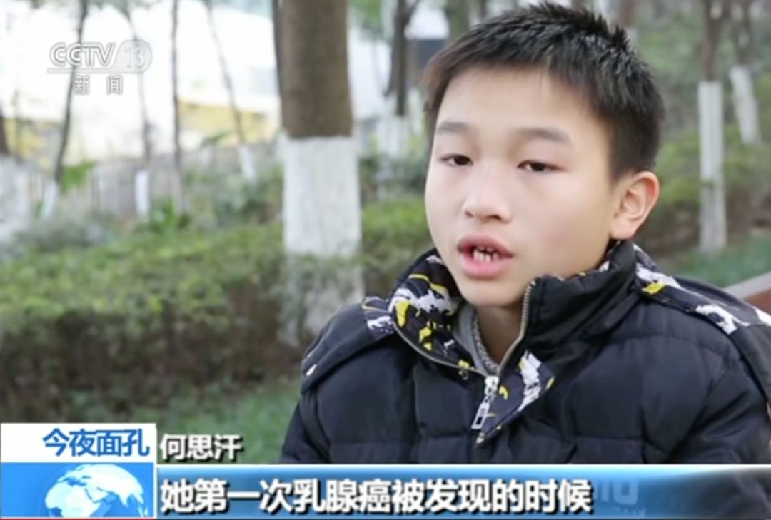 何思汗说,她第一次乳腺癌被发现的时候,去切除的时候,头发全部掉光了,脸形都变完了。