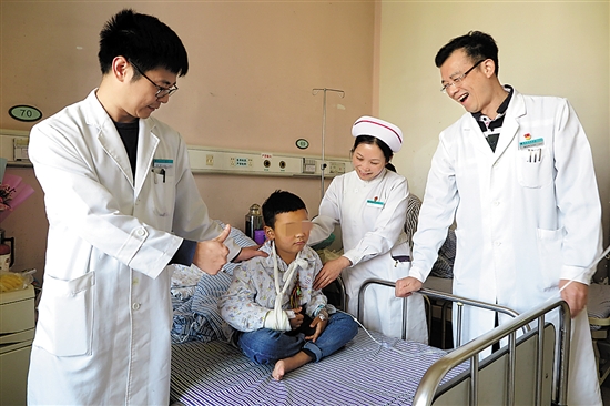 “回去多练习握拳和‘顶呱呱’。”3月11日上午,在佛山市中医院小儿骨科病房,医护人员来到西藏患儿才巴的床边,在他出院之前耐心叮嘱注意事项。