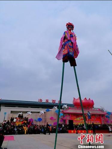活动中展示的高跷,惊险刺激。 胡友军 摄
