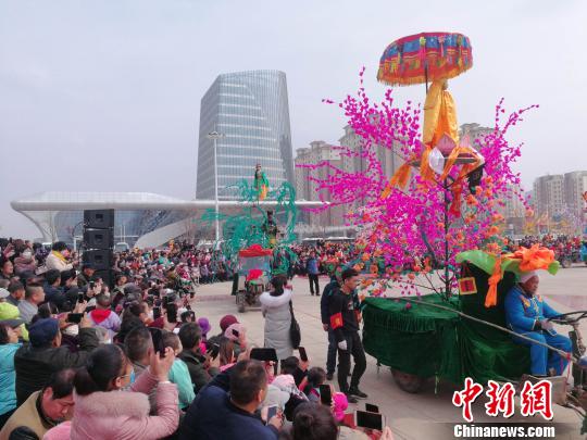 非遗项目“亭子”展示,吸引众多民众。 胡友军 摄