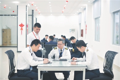 3月15日清晨,机长何福强与机组成员进行飞行前的准备工作。
