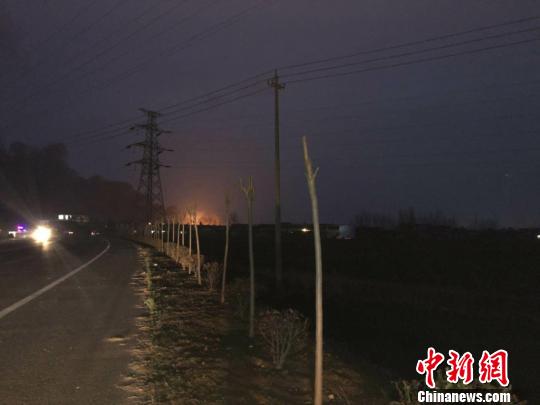爆炸工厂仍在腾起火焰。 于从文 摄