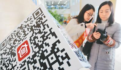 2018年11月27日,江西省吉安市安福县政务服务中心工作人员在教市民扫描二维码,群众办事实现“手机移动办”。