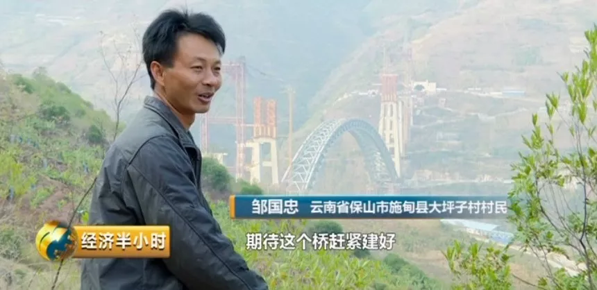 云南省保山市施甸县大坪子村村民邹国忠:期待这个桥赶紧建好,我们要去旅游,要把我们的农产品往外销出去,销到北京、上海这样的大城市。