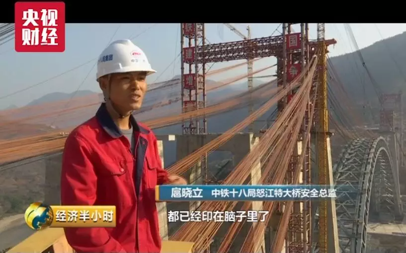 中铁十八局怒江特大桥安全总监 扈晓立:每个索的这个角度都已经印在脑子里了,天天都在计算这些东西,天天都在算,天天都在研究,保证这个结构的安全。