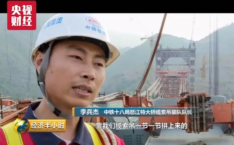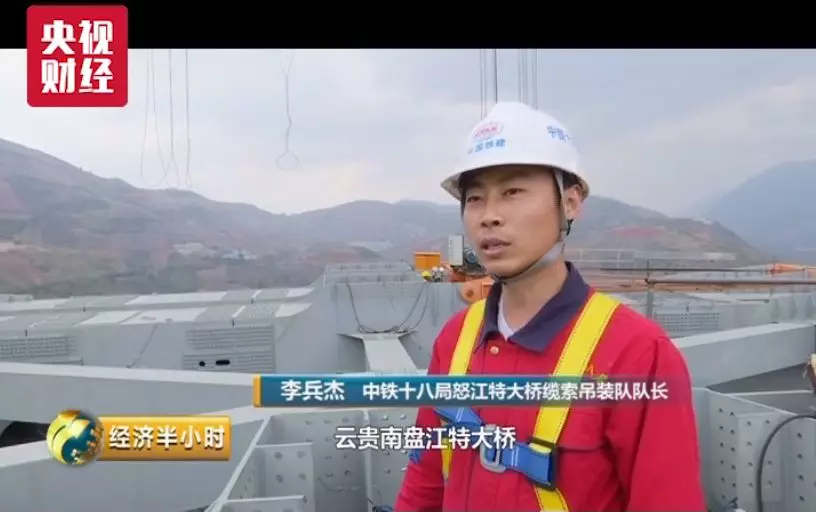 中铁十八局怒江特大桥缆索吊装队队长 李兵杰:922根杆件总共2万多吨,靠我们缆索吊一节一节提上来,当合龙那一刻,我们感觉所有的辛苦还是很值得的,站在合龙那个位置感觉还是特别自豪。