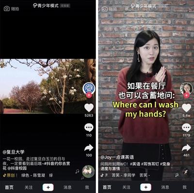 今年3月,抖音升级了青少年计划,在原有功能基础上,用户在推荐首页将只能浏览由抖音青少年内容团队精选出的短视频,包括教育、知识、绘画、摄影等方面有趣有用、寓教于乐的内容。