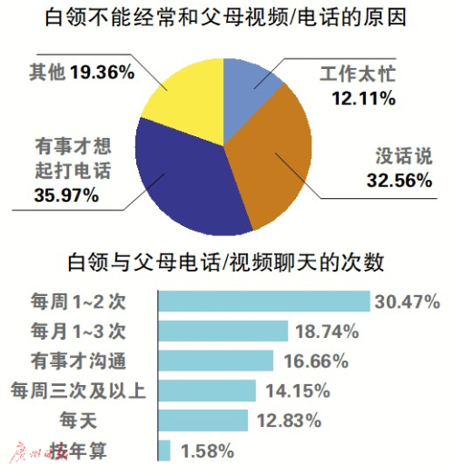 白领与家人联络少,30.47%的白领与家人每周联络1~2次,每天联系父母的白领仅占12.83%,“有事才联系”是主因。