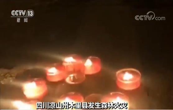 4月2日凌晨1点左右,在西昌市区通往殡仪馆的道路中间,市民自发摆放了菊花,白色的条幅上写着“救火英雄一路走好”,还有人点燃了蜡烛,并将蜡烛摆成了心的形状。尽管已是午夜,大家仍自发守候在街道两旁,等候着在火灾中牺牲的救火英雄归来。