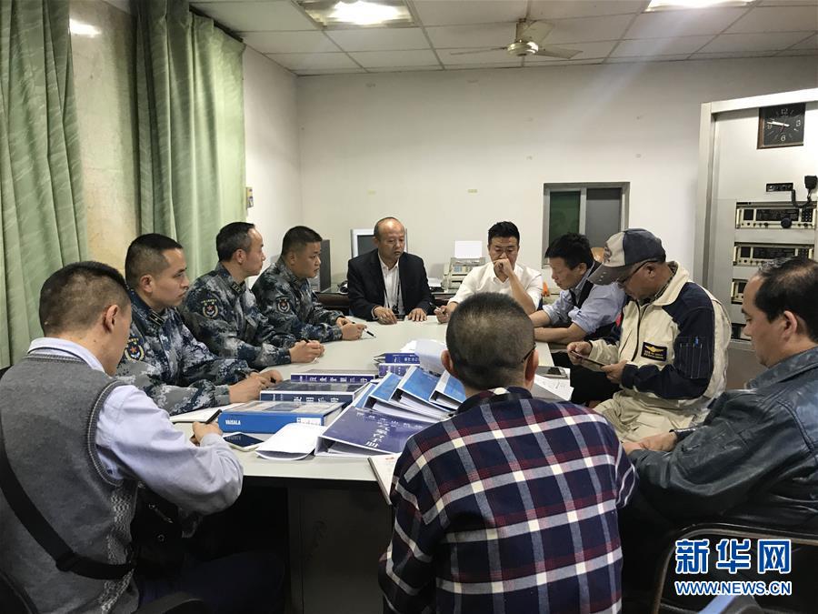 4月1日,在四川西昌青山机场应急救援临时指挥部,救援队伍在研究搜救方案。 新华社发(王云 摄)