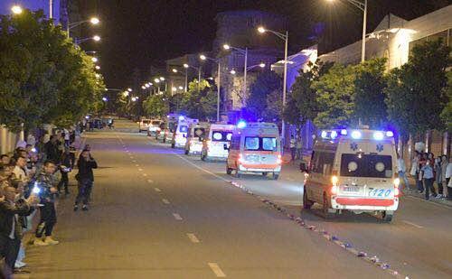 载有最后6名凉山木里森林火灾救援人员遗体的车队缓缓驶入西昌市。刘忠俊 摄
