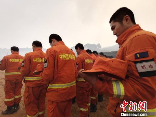 中新网长治4月4日电 (李庭耀)面向西南,全体肃立、脱帽、低首。4月4日10时30分,山西沁源火场,各任务点共1700余名消防指战员哀悼凉山木里森林火灾中不幸遇难的30名扑火人员,凌厉的警报声在山间回响,车辆汽笛长鸣。