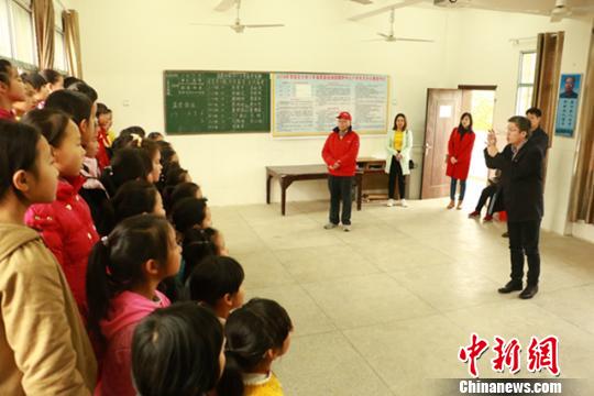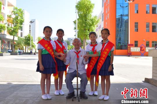 学生们给李体坚献上《七子之歌》。受访者供图