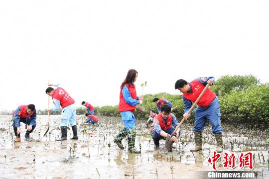 白鹭保护队每年都到海边滩涂种树,给白鹭创造更好的生存环境。 岳浩 摄