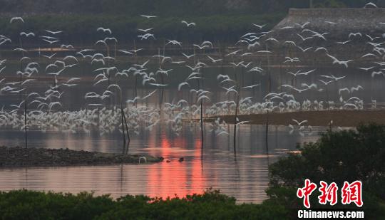 北仑河口湿地鹭群成为南国海岸独有的景观。 广西北仑河口国家级自然保护区供图 摄