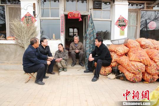 驻村工作组和村干部到五保户刘国栋家走访。 孙婷婷 摄