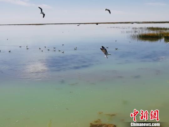 图为察尔汗盐湖湿地引来野生鸟类种群繁衍生息。 钟欣 摄